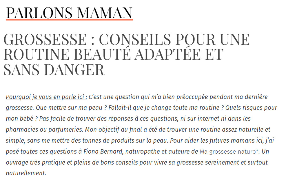 « Un livre que j’aurais aimé lire avant ma première grossesse, cela dit j’ai appris pleins de choses, il y a beaucoup de tips à retenir sur la bonne l’alimentation ! Je recommande vivement ce livre à toutes les futures et à toutes les mamans qui sont dans cette approche de vitalité et de bien vivre ! »
